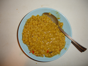 Steam rice and boil mung beans. Can add salt, pepper, cinnamon, cloves, ginger, cardamom, and chili pepper.